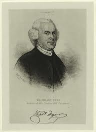 also a lawyer and justice of the peace, was involved in land development for Susquehanna Valley, Pennsylvania and Wyoming Valley areas, a captain in the militia, was a lieutenant colonel in the Connecticut Regiment during the French and Indian War, a delegate to the Stamp Act Congress, Chief Justice of Connecticut superior court, and a member of the Committee of Safety. John Adams described Dyer as “…longwinded and roundabout, obscure and cloudy, very talkative and very tedious, yet an honest, worthy man; means and judges well.”